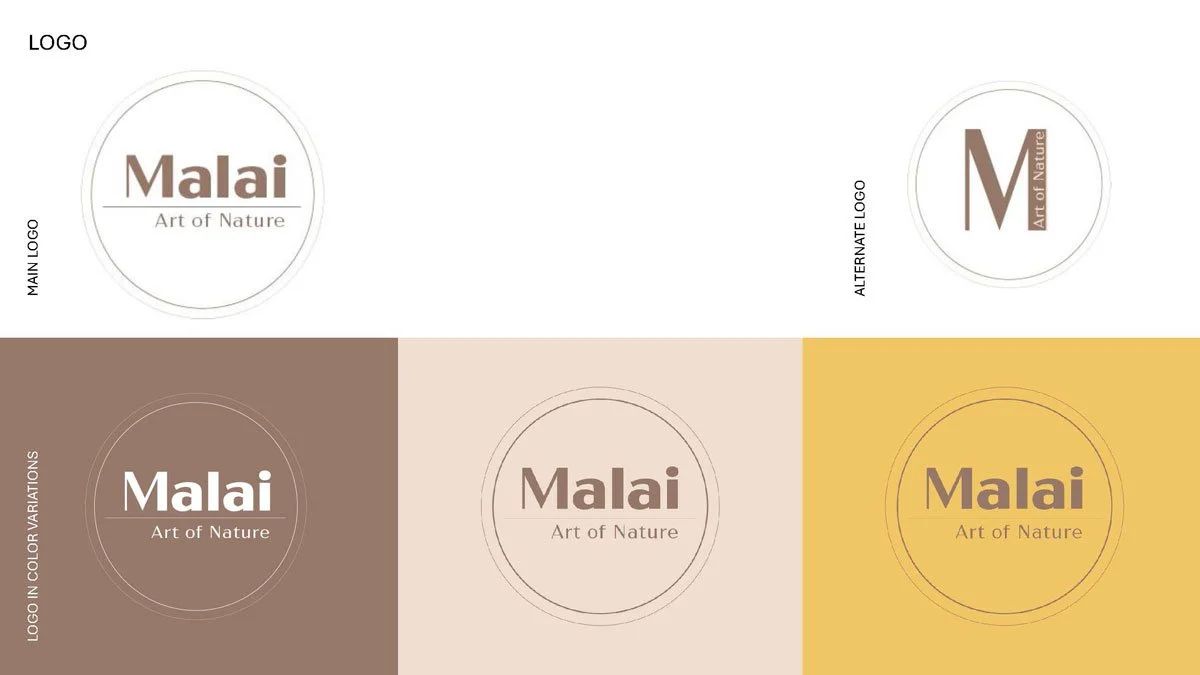 MALAI, the Art of Nature, is a Toronto-based start-up that launched its first three fragrances of Body Creams and Beard Oil in 2022. Committed to organic, naturally sourced ingredients, the brand aimed to elevate its image in the skincare market, catering to individuals seeking premium, nature-inspired products. We focused on a colour palette that reflects natural elements—deep greens, warm browns, and soft, pastel creams—creating a harmonious and cohesive brand identity. The logo was designed to embody nature’s essence with a minimalist, elegant circular shape, symbolizing the continuous cycle of life and MALAI’s commitment to organic products. A clean, modern sans-serif font was used for bold headlines, paired with an elegant serif font for body text to balance sophistication and readability. To align with MALAI’s sustainability values, recyclable packaging materials were selected, ensuring both affordability and low environmental impact. The brand guidelines were extended to business cards, postcards, and product packaging, using eco-friendly materials to further reflect the brand's commitment to sustainability.