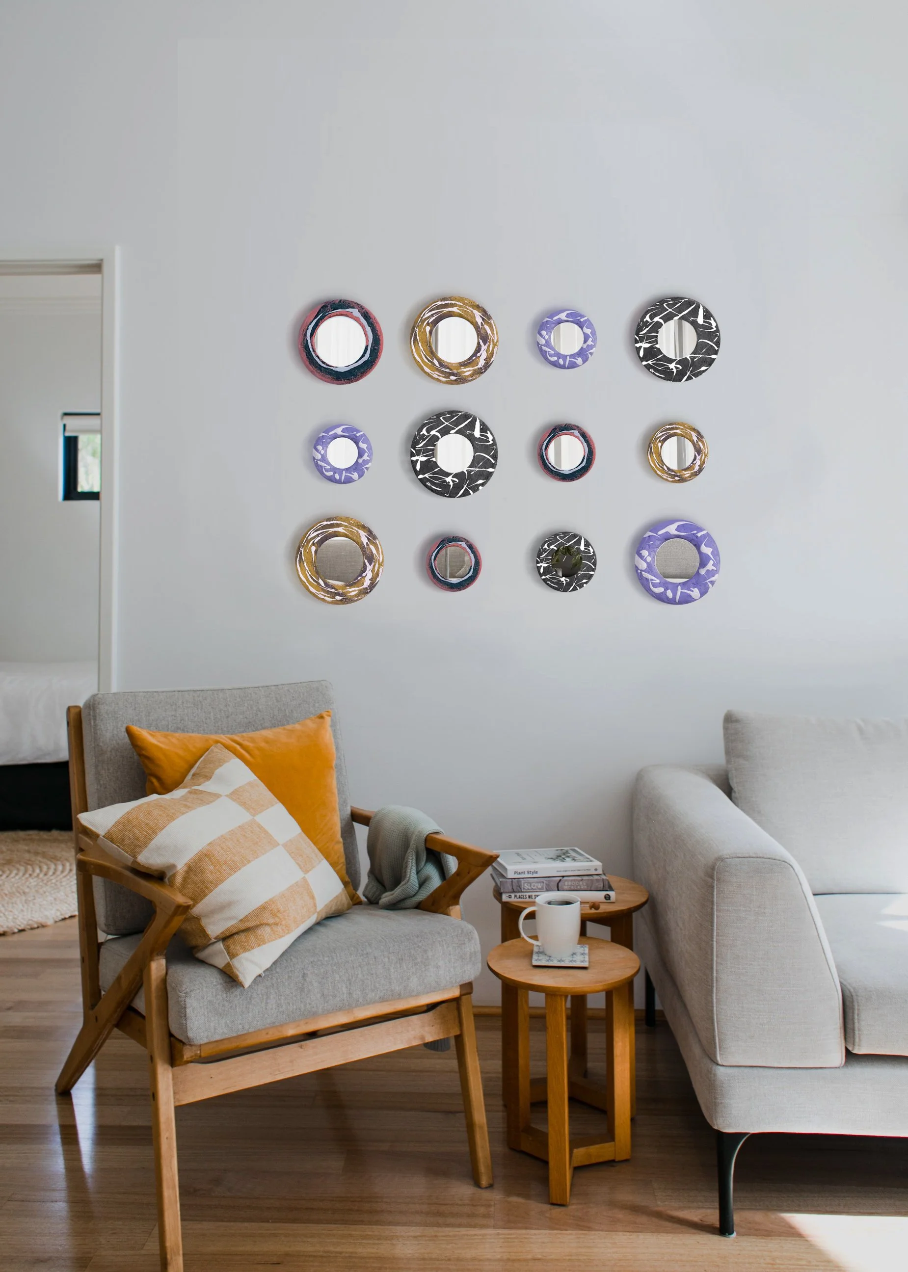 ALCHEMIRROR's functional modularity enables personalizing home decor by pairing, fusing, or mixing and matching various shapes, colours, and sizes.