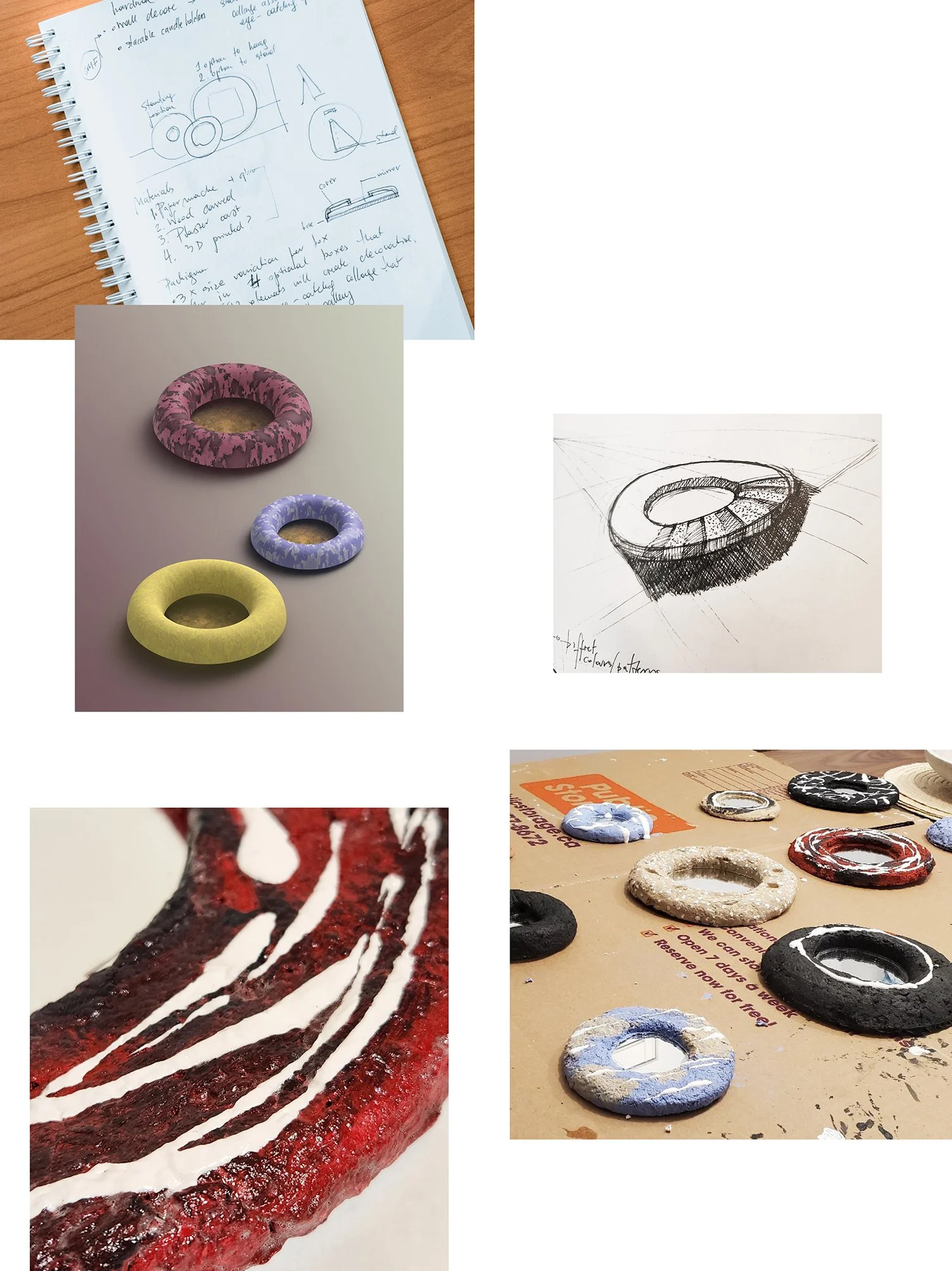 Each abstract motif tells a unique story, representing the journey of recycling and the transformation that the materials undergo.